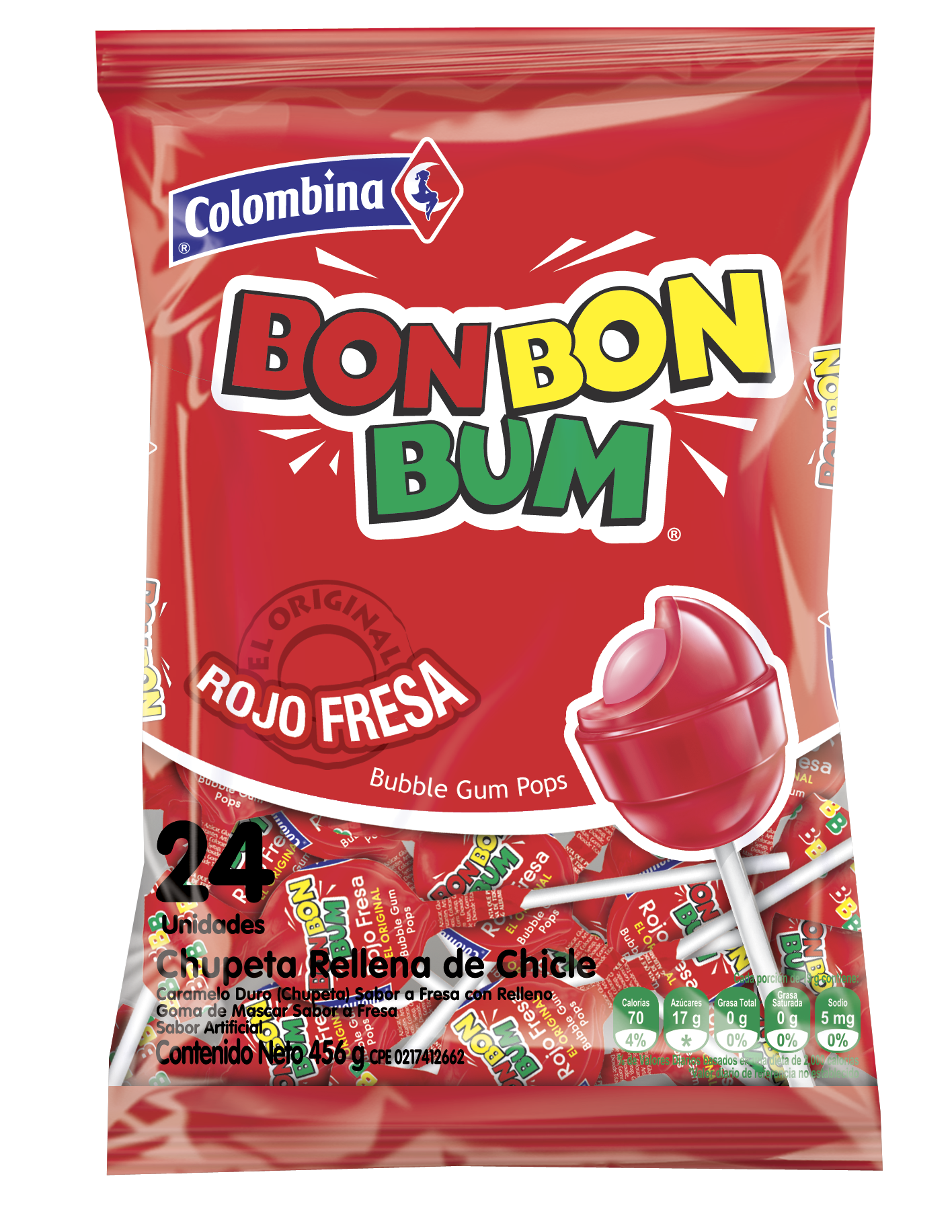 Chupeta Bonbon Bum Rojo Fresa 456g