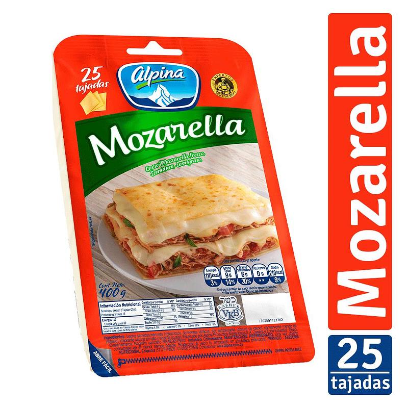 Queso Mozarella Alpina 25/Tajadas 400g